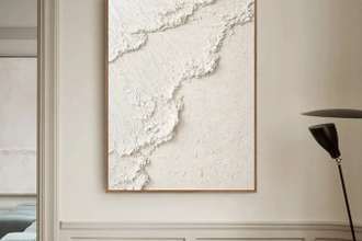 On large walls, texture does more work than color. Even monochrome paintings feel rich when texture is present.