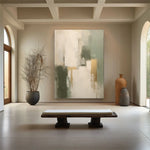 Category: Abstract Art, All Paintings, beige, green, Hotel, Living room, Vertical