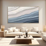 Gentle, flowing layers of soft grays and blues mimic the peaceful undulations of a quiet sea, evoking a sense of calm and tranquility that only the rhythmic lapping of ocean waves can provide.