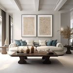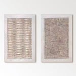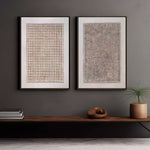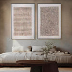 This pair of canvases features meticulous, interlocking patterns in soft grays and whites, capturing the subtle interplay of texture and form, evoking a sense of calm order and balanced beauty in a minimalist design.
