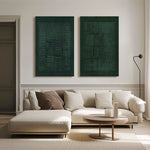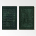 This pair of canvases features meticulous, interlocking patterns in soft grays and whites, capturing the subtle interplay of texture and form, evoking a sense of calm order and balanced beauty in a minimalist design.