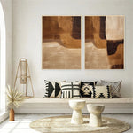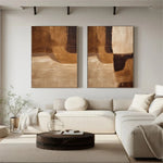 Enhance your room decor with our set of 2 Wabi Sabi hand-painted abstract canvas paintings. Featuring black and beige geometric figures, these captivating wall art pieces add an artistic touch to your home decor. Handcrafted on canvas, they are perfect for stylishly transforming any room with their decorative patterns.